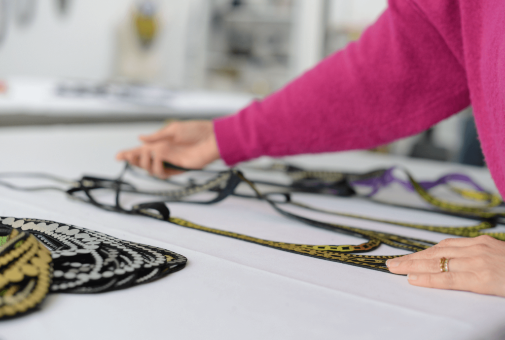 Uliʼs pieces are produced in Amsterdam, by hand and with love by Uli & her team. They are worn all over the world and can be found in permanent collections of international museums and private collectors. They are sold at shows and galleries in Paris, Miami and Dubai.